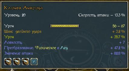 Жаль конечно, ну и 100% прибавки к ХП неплохо. На роль спасательной подушки от суперприёмов боссов не совсем подходит, но в паре с телосложением может помочь. У теневика прибавка ХП от ауры тоже не мега большая, а у некоторых классов и того нет, но живут же. К тому же есть ещё показатель эффективности щита, надо с ним поэкспериментировать. Клинок на ловкость, теневику не подойдёт. Я его прикупил торговцем 16го левела, сейчас отдал серафиме, она им дракона режет. У инка есть алебарда с таким же свойством. Молоток с шансом двойного удара так и не смог купить. ХС это страж ? 2DreadKnight:Я БФГ попробовал, интересная штука, но звезда удобнее. Я как-то с одной звезды сразу три коричневых шмотки получил. Хотя именно как стрелка я серафиму качать не пробовал. Если уж стрелка, то мне кажется дриада интереснее. Очень уж у неё ауры и баффы вкусные. -------------------- Been a long road to follow been there and gone tomorrow without saying goodbye to yesterday...